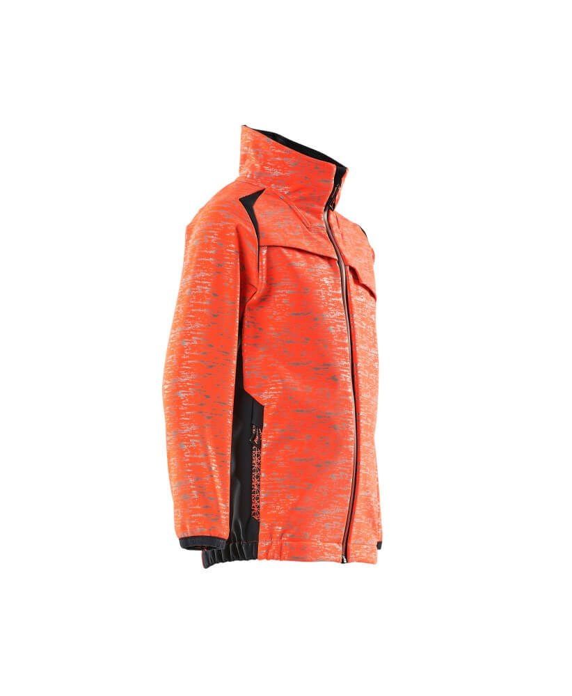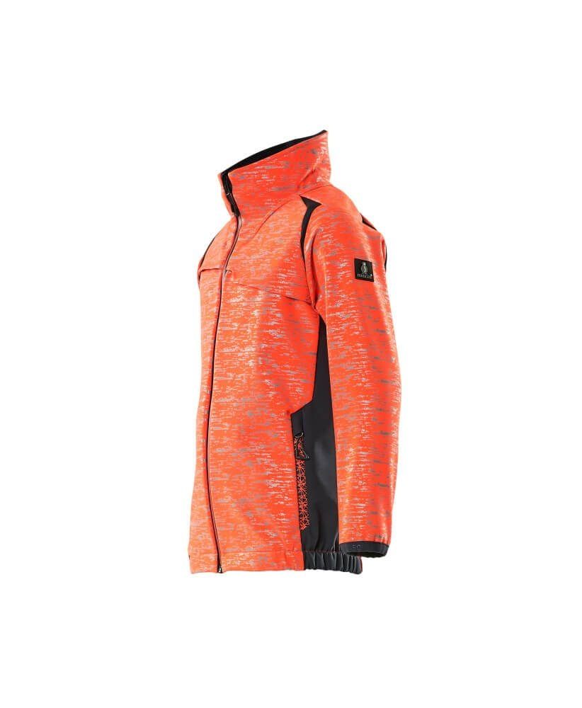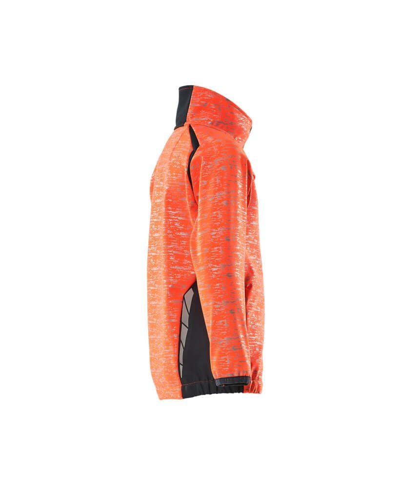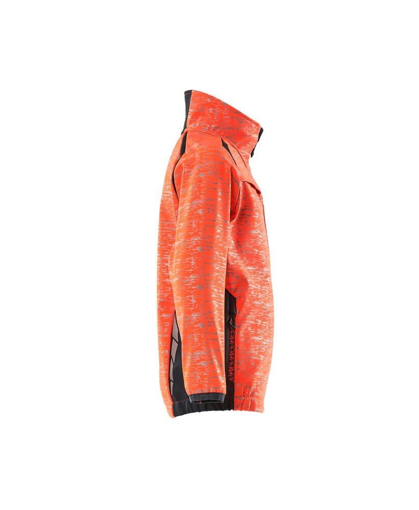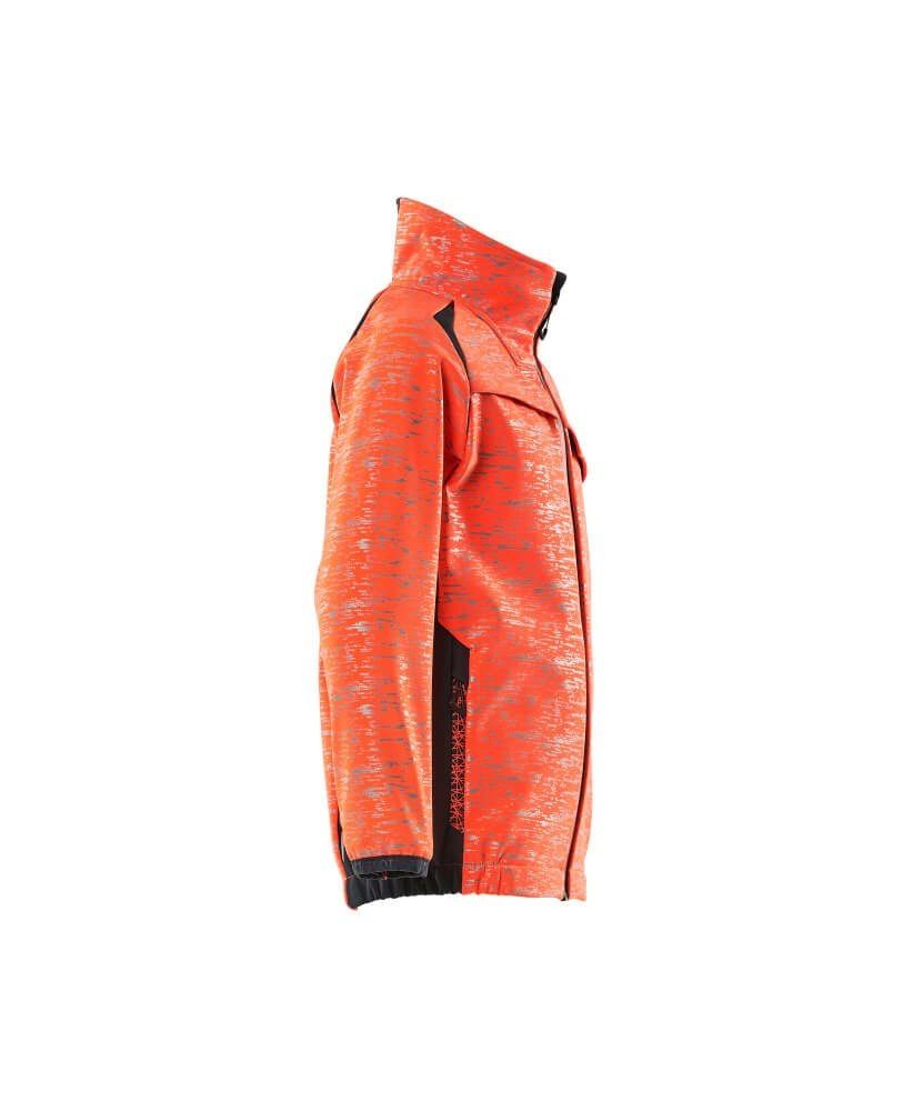 Tweekleurig. Ademend, winddicht en waterafstotend. Sluiting met rits en inwendige windvanger. Voorzakken met rits. Elastiekband bij de pols. Elastiek in de zijden aan de onderkant. Reflectie-effecten.
