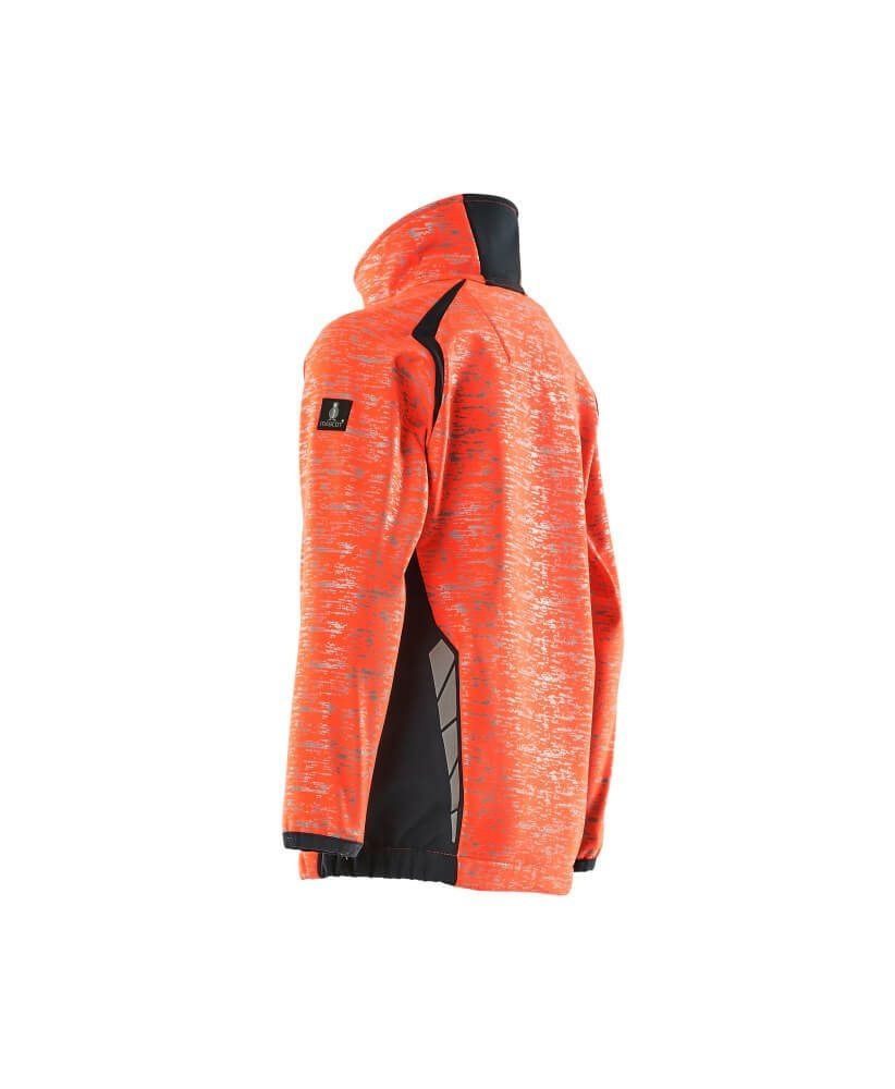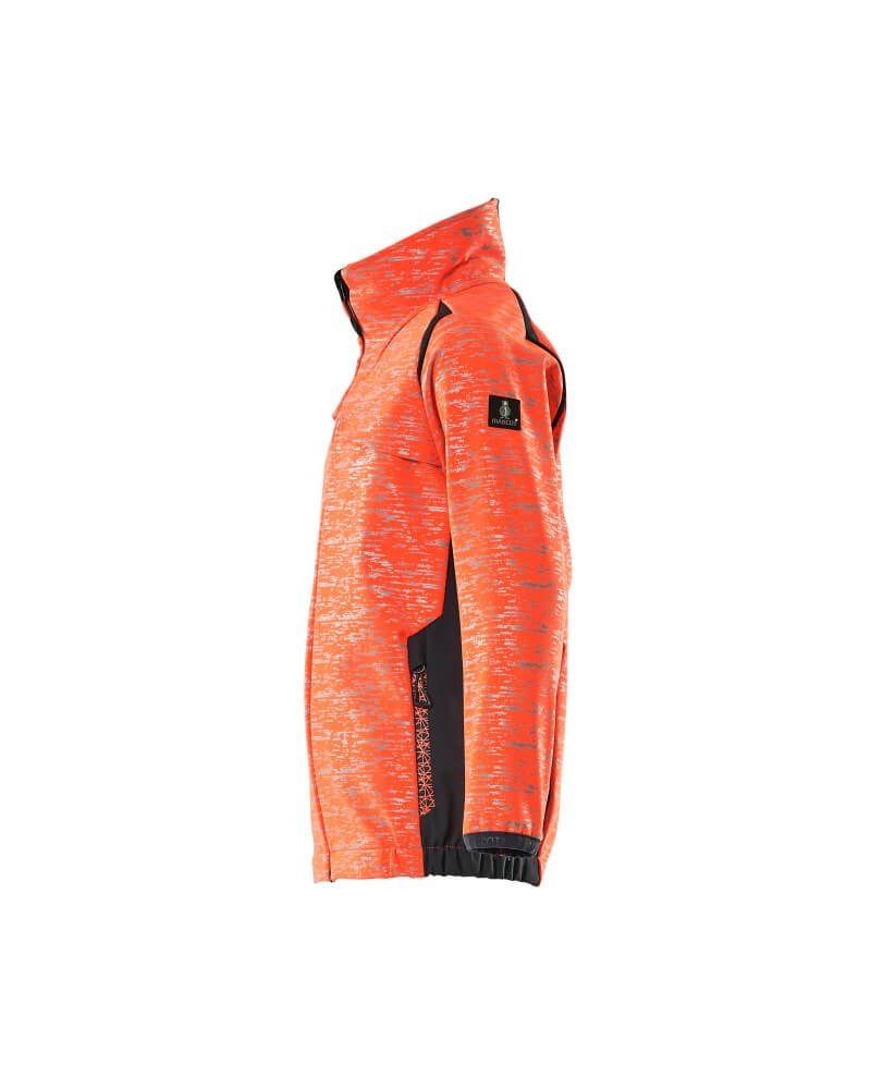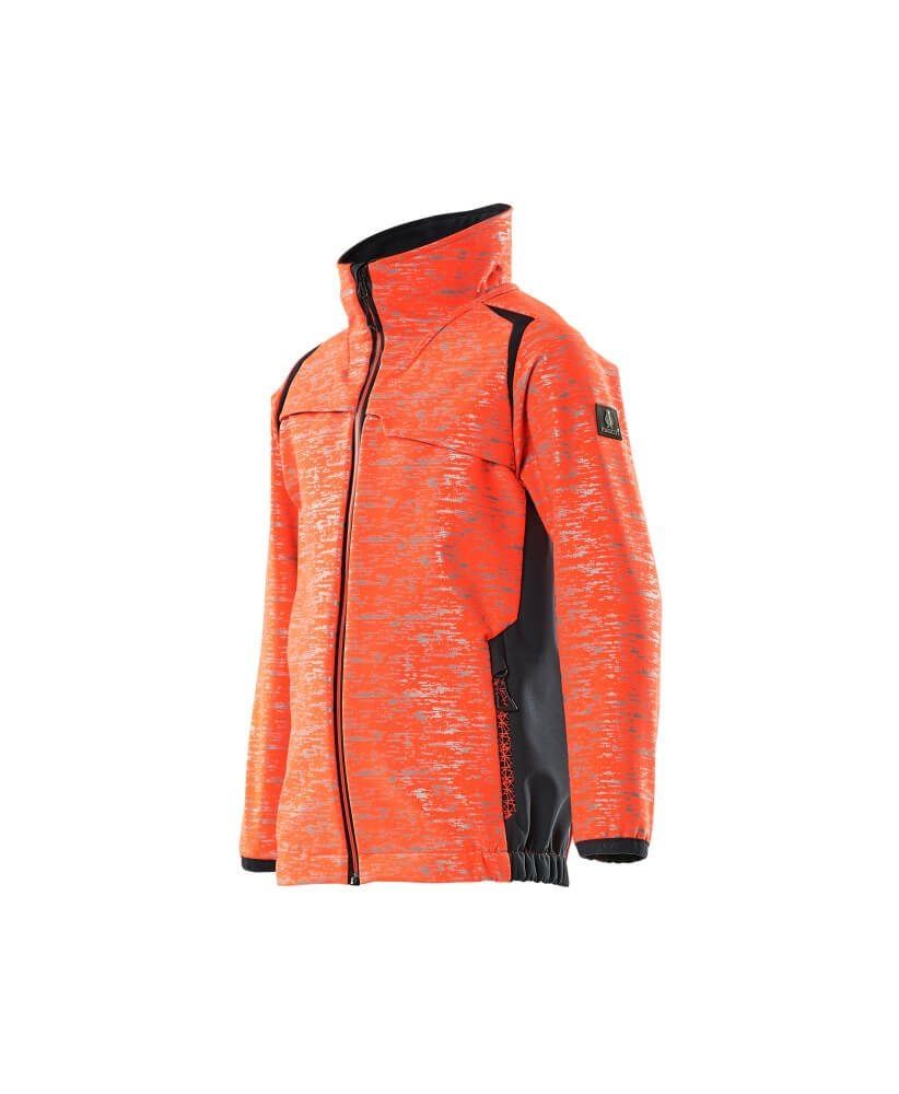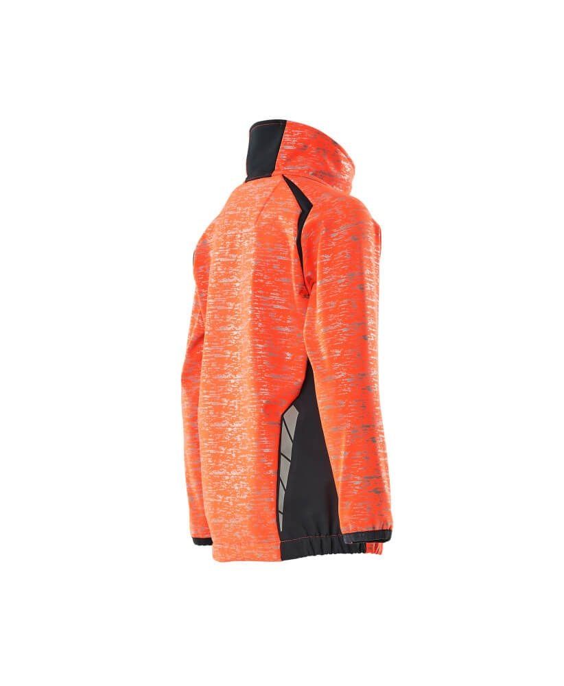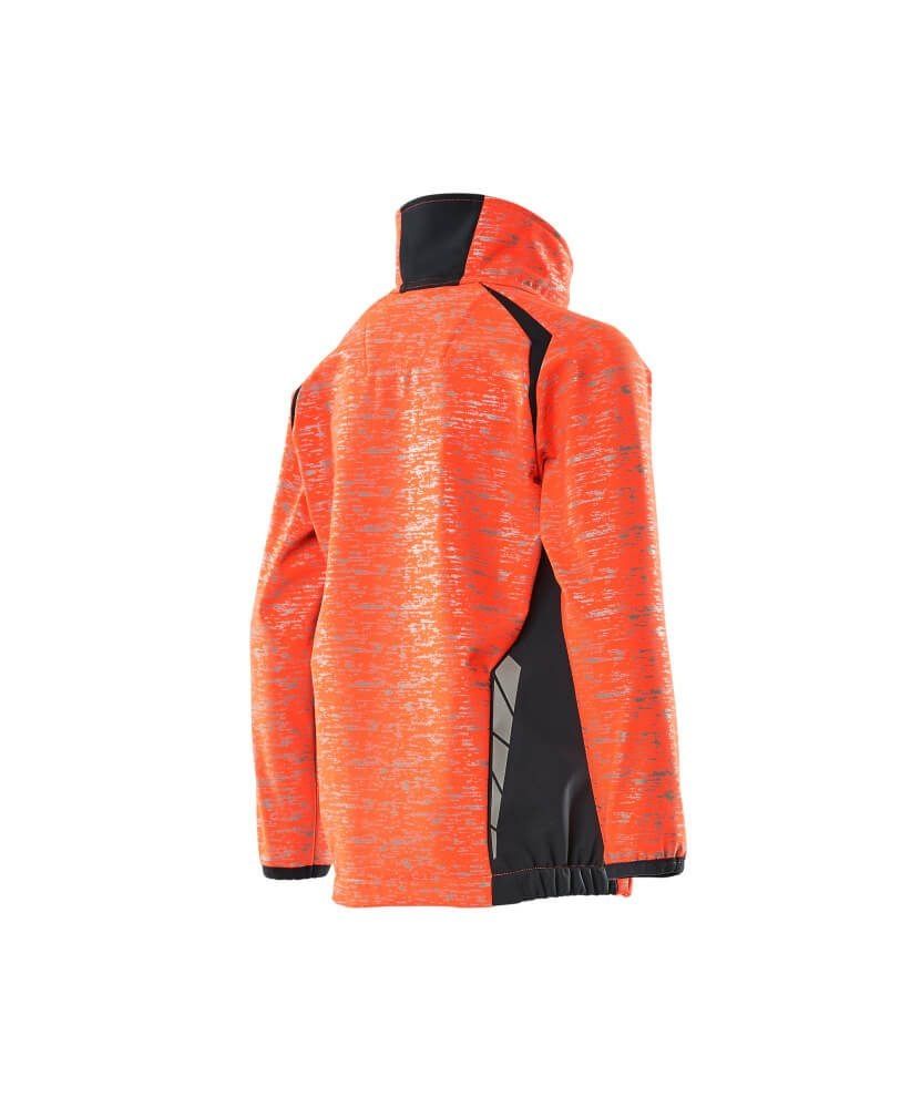 Tweekleurig. Ademend, winddicht en waterafstotend. Sluiting met rits en inwendige windvanger. Voorzakken met rits. Elastiekband bij de pols. Elastiek in de zijden aan de onderkant. Reflectie-effecten.